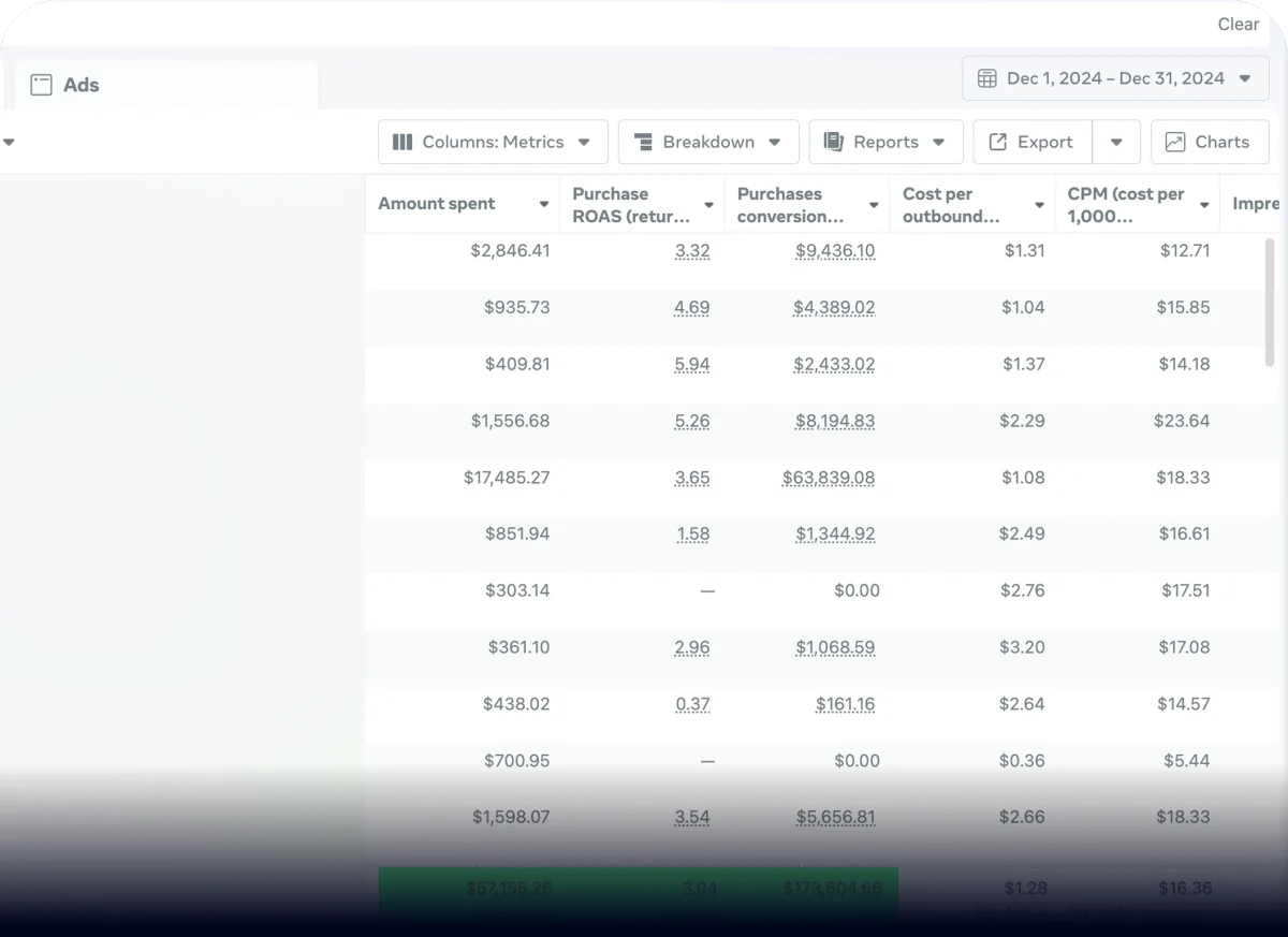 In December 2024, I executed a $57,000 Meta Ads campaign for a holiday-focused brand. Despite the high competition and CPMs during peak season, we maintained a solid 3.04x ROAS .