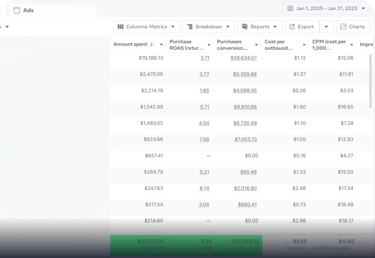 In January 2025, I managed a $30k Meta Ads campaign for a scaling e-commerce brand. With a structured funnel, high-converting creatives, and continuous optimization, we delivered a strong 3.39x ROAS